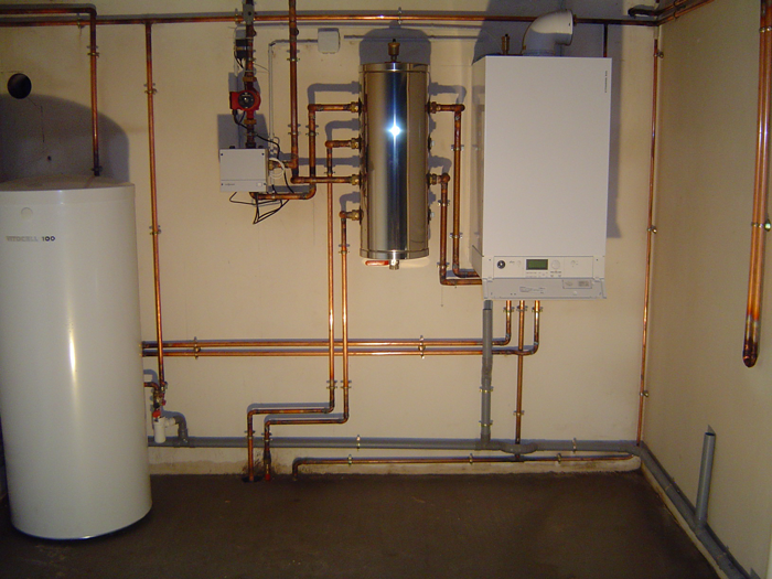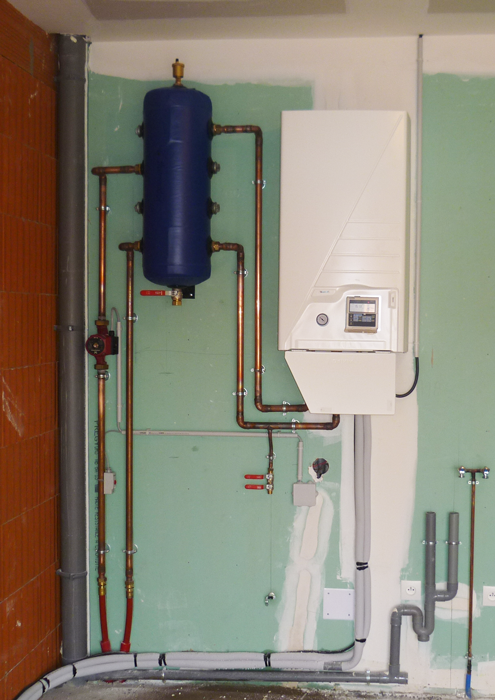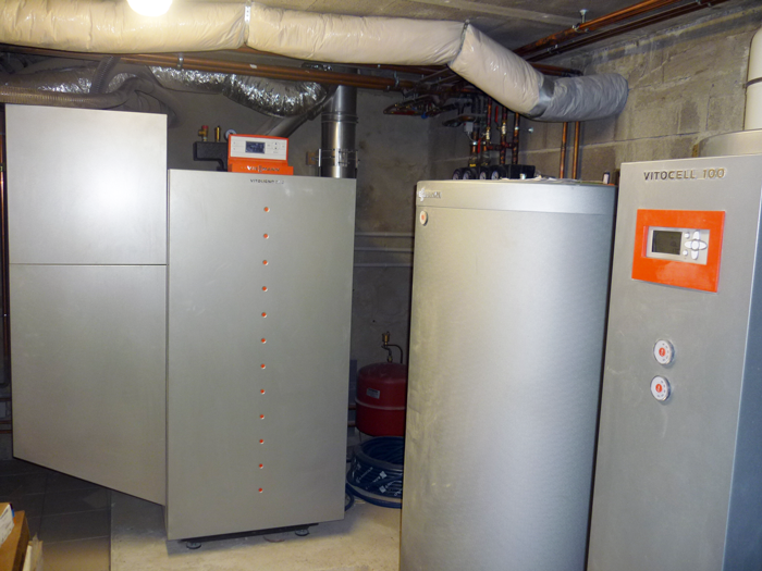 En cas de besoin, l'apport d'énergie se fait soit en relève de chaudière (Gaz, Fioul) P.A.C., soit par une résistance électrique.