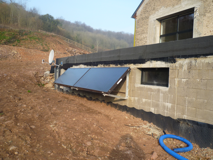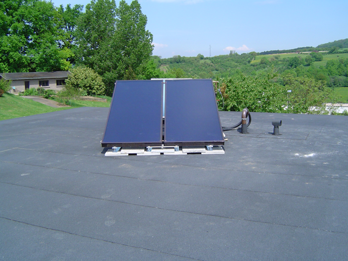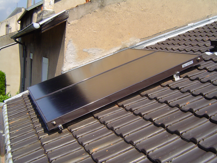 Pour une production d'eau chaude sanitaire, les capteurs plan ont une surface de 4.6m² associée à un ballon de 300 litres.
